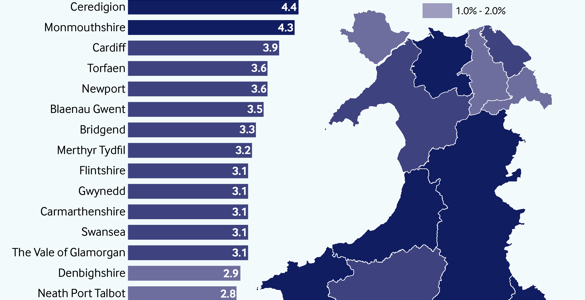 In 2017-18, the largest increase in overall council tax will be in Powys, where the combined local authority, community council and Police increase is £62 (4.7%), the largest percentage increase in council tax is in Pembrokeshire, where council tax will rise by 5.3% (£56). Pembrokeshire currently has the lowest charge for a band D property (£1,128); Blaenau Gwent has the highest (£1,754). The average increase by local authorities (including community councils but excluding police) will be £35 (3.1%). The highest percentage increase is in Pembrokeshire (4.9%) with the lowest in Caerphilly (1%). In terms of cash increases, the highest increase is in Monmouthshire (£52) with the lowest in Caerphilly (£10).