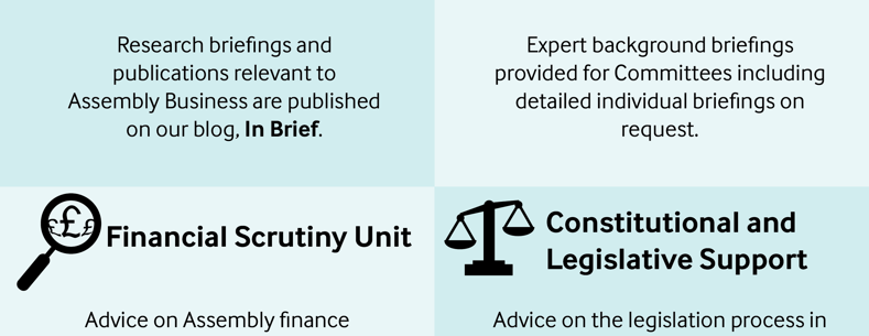 - The Research Service’s blog, In Brief, which publishes topical articles on issues of interest to Assembly Members. The Research Service continually update their blog and publications with the latest information and so welcome comments on these. You can also sign up to alerts to new publications relevant to your subject area.