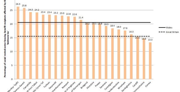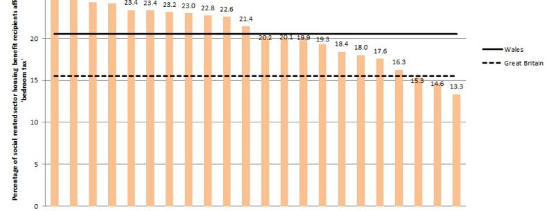 - The Welsh local authorities where the highest percentage of Housing Benefit recipients in the social rented sector have been affected by the measure are Merthyr Tydfil (26.3%), Blaenau Gwent (25.8%) and Caerphilly (24.3%).