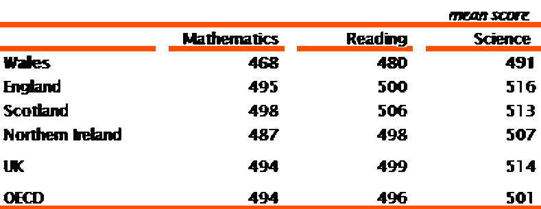 - National Foundation for Educational Research, Achievement of 15 year olds in Wales: PISA 2012 National Report (2013)