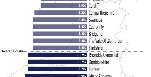 - Reductions range from a 2.4% fall in Neath Port Talbot to a 4.5% fall in Ceredigion.