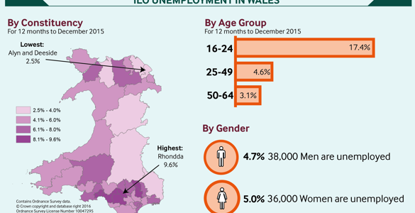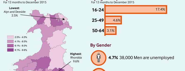 This briefing paper (PDF, 2.95MB) provides a statistical overview of the labour market. Information is included on Assembly constituencies, Wales and UK nations and regions. And here’s our infographic summarising the latest labour market figures for Wales.
