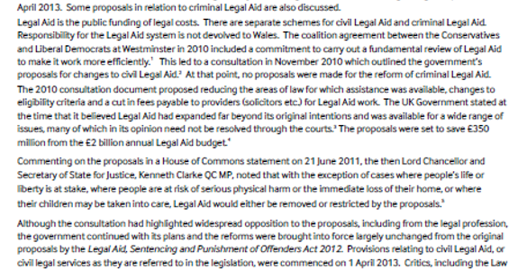 This Quick Guide focuses on the current civil Legal Aid system in England and Wales following changes implemented in April 2013. Some proposals in relation to criminal Legal Aid are also discussed.