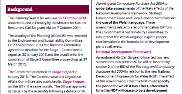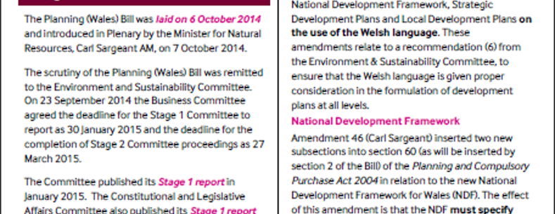 This document sets out the key changes made to the Planning (Wales) Bill (“the Bill”) during Stage 2 proceedings. Planning (Wales) Bill Summary of changes at stage 2
