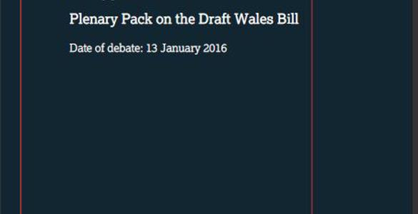 The Research Service has published a Plenary pack for the debate on the draft Wales Bill on 13 January 2016. The pack brings together links to the key documents and proceedings in relation to the Draft Bill and provides a brief summary of its main provisions and the issues raised in scrutiny as well as a glossary of Welsh terms relating to the Draft Bill. Plenary Pack on the Draft Wales Bill (PDF, 282KB)