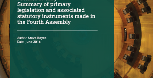This paper is a reference document which lists the primary legislation made in the Fourth Assembly and statutory instruments made using powers in these Assembly Acts. The information in this paper is up to date as of 12 May 2016.