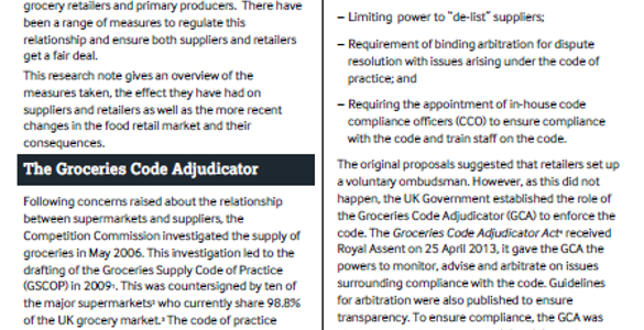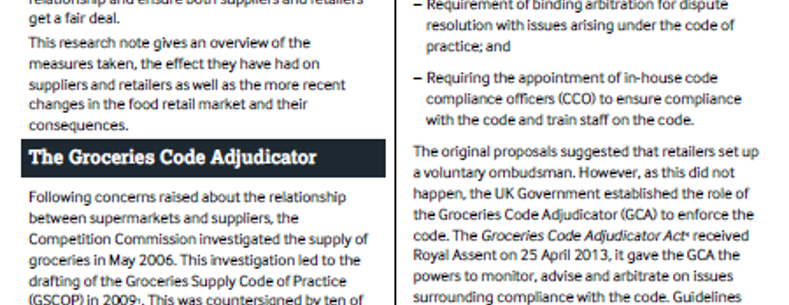 This research note gives an overview of the measures taken, the effect they have had on suppliers and retailers as well as the more recent changes in the food retail market and their consequences. The Food Supply Chain