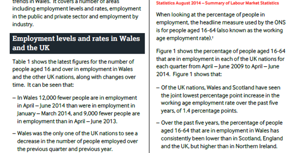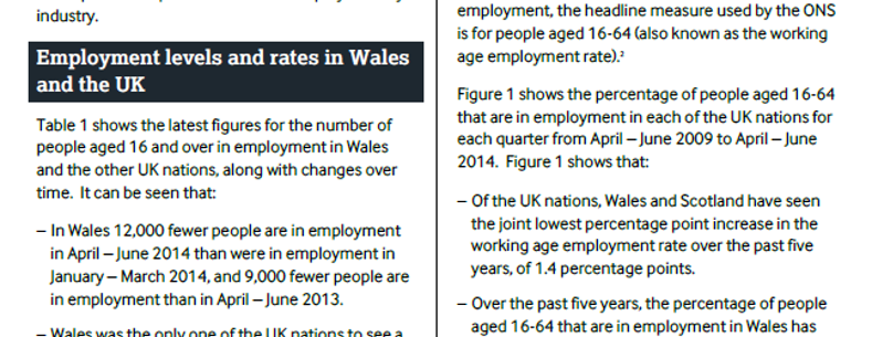 This is the fourth in a quarterly series of research notes that provide an overview of employment trends in Wales. It covers a number of areas including employment levels and rates, employment in the public and private sector and employment by industry. The Welsh Workforce - Employment in Wales