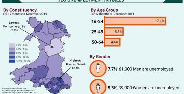 - Wales has the highest ILO unemployment rate of the UK nations, at 6.7% in January to March 2015;