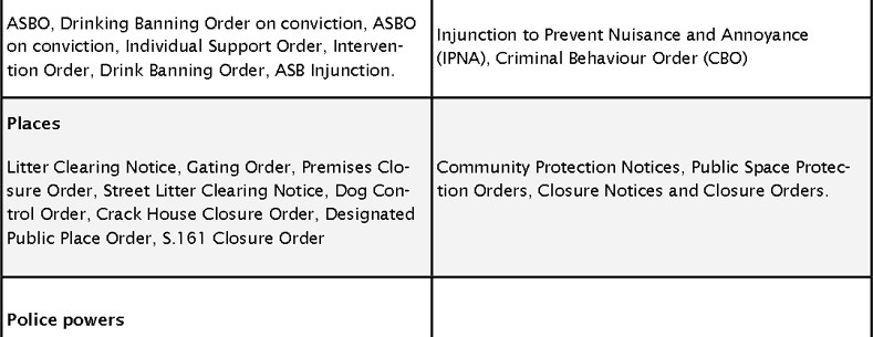 Wales has a history of using Anti-Social Behaviour Orders (ASBOs) as a last resort in contrast to the approach taken in England. The policy context for tackling anti-social behaviour - particularly youth annoyance in Wales has been proactive, informed by rights and entitlements; a distinct approach from that taken in England which has tended to be more risk-orientated – focused on minimising risk, diversion and containment. The UK Government’s Anti-social Behaviour, Crime and Policing Bill was introduced in the House of Commons on 9 May 2013. It is currently at Committee stage. One of the UK Government’s policy objectives for the Bill is to create new powers to tackle anti-social behaviour - to simplify and streamline the approach. The Bill makes provisions for condensing the current 19 orders to 6 new orders to deal with anti-social behaviour and provides victims with the ability to ensure action is taken. The Bill is the culmination of a long process of discussion and consultation by the UK Government. Table 1 below provides a summary of the rationalisation of anti-social behaviour tools proposed in the Bill: Currently, there are a large number of “tools” to deal with anti-social behaviour through more than ten Acts of Parliament. Some of these tools, such as ASBOs, are fairly broad powers to impose restrictions on anti-social behaviour perpetrators. Others were designed to deal with very specific problems. This is particularly true of the tools brought in to deal with environmental anti-social behaviours, such as litter or graffiti. Some of the anti-social behaviour remedies apply to individuals and some – such as dispersal orders or gating orders – apply to areas where there have been problems. The National Assembly’s Communities, Equalities and Local Government Committee asked the Minister for Local Government and Government Business, Lesley Griffiths AM, about the implications of this Bill on the Welsh Government’s policy agenda and decision making in regards to anti-social behaviour, specifically the work that has been done, working in partnership with the police, to steer children and young people away from activity which causes harassment or distress on 10 July 2013. On Tuesday 24 September 2013, Assembly Members debate the provisions in the Bill in plenary, alongside three other proposed changes in the Bill, relating to the recovery of possession of dwelling houses, capital finance controls and dangerous dogs. Article written by Sarah Hatherley