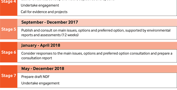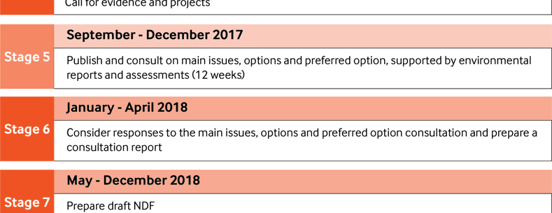 The Statement of Public Participation shows there will be two further 12 week stages of public consultation, prior to the draft NDF being considered by the Assembly.