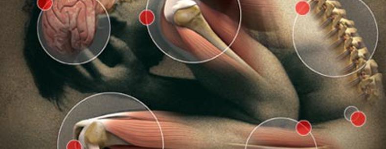 Fibromyalgia, also known as fibromyalgia syndrome (FMS or FS) is a complex chronic pain condition characterised by widespread pain all over the body: muscular and joint tenderness, poor sleep quality and high levels of fatigue. It affects muscles and soft tissues such as tendons and ligaments and is a common cause of chronic musculoskeletal pain. Other features of fibromyalgia include cognitive disturbance (memory and concentration), increased anxiety, headaches and irritable bowel syndrome (IBS).