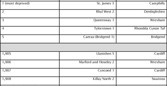 The Welsh Index of Multiple Deprivation (WIMD) 2014 was published on 26 November 2014 by the Welsh Government. Most deprived and least deprived areas The headline WIMD 2014 results in the table below show the 5 most deprived and 5 least deprived Lower Super Output Areas (LSOAs).
