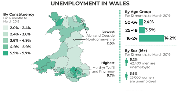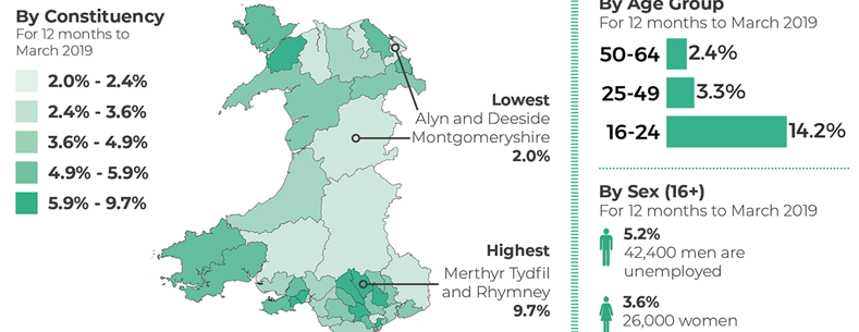 Infographic showing the latest labour market figures for Wales.