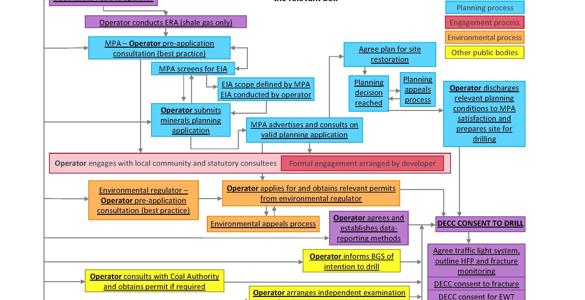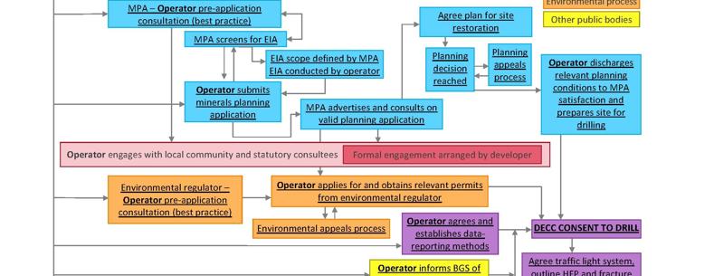 However, public consultation on the proposals found that 99% of respondents opposed legislation to provide underground access for fracking. Earlier this year following an agreement to devolve the licensing of fracking operations to the Scottish Government, a ‘moratorium’ on fracking consent in Scotland was announced. The House of Commons Environmental Audit Committee recently called for a ‘moratorium’ on fracking in the rest of the UK. This call was rejected during the final stages of the Bill’s passage through Parliament. However 13 Labour amendments were voted through, imposing a number of new restrictions on fracking operations. These included a ban on fracking ‘within and under’ protected areas such as national parks, Areas of Outstanding Natural Beauty and Sites of Special Scientific Interest. Late changes to these amendments in the House of Lords removed the term ‘under’ from the text, potentially allowing for fracking beneath a protected area as long as the well site is located outside its boundaries. Other late changes to the Labour amendments included the removal of mandatory Environmental Impact Assessments (although the environmental impact should still be considered), removal of the need to monitor emissions beyond methane and removal of the need to individually notify local people of fracking taking place in their area. The changes in the Infrastructure Act will introduce further complexities into the arrangements for consenting and permitting of fracking operations in Wales. The existing arrangements for Wales are already complex as the current guidance from DECC shows: